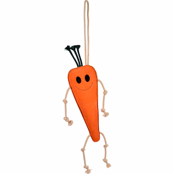 Leksak/gosedjur till häst. Morot tillverkad av mocka. Optimal för hästar som lätt blir rastlösa i boxen, då denna kan hjälpa till att sysselsätta hästen och motverka tristess. Enkel att hänga upp.