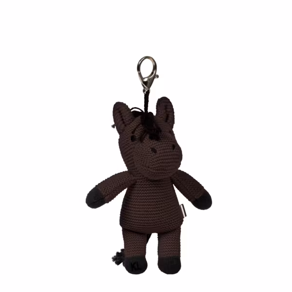 Möt KLMonty Knitted Horse Teddy, en förtjusande liten, stickad följeslagare designad för att ge en touch av charm till din vardag.- Nyckelringsfäste: Perfekt st