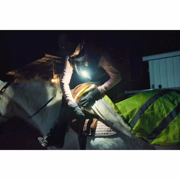 Light01 är en innovativ lampa som kan fästas på många olika typer av underlag tack vare sitt patenterade ståltrådslås, till exempel på alla typer av textiler så som jackor, mössor, koppel och hästtäcken, utan att lämna några märken efter sig. Om man önskar att använda lampan på hjälmen finns det tillhörande fästlappar som enkelt kan tas bort efter behov. Eftersom du kan fästa lampan på olika material kan du undvika att blända din fyrbenta vän och samtidigt ha händerna fria för en bekväm och säker arbetsmiljö. Med sina 500 lumen i ljusstyrka får du en räckvidd på upp till cirka 100 meter. Tack vare sin låga vikt (32 g) och kompakta mått (42x42x22 mm) är den lätt att både fästa, bära och förvara.