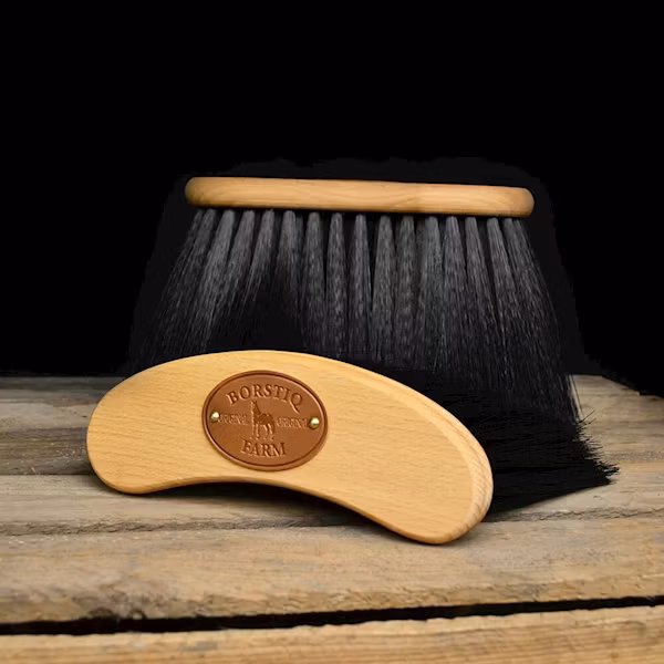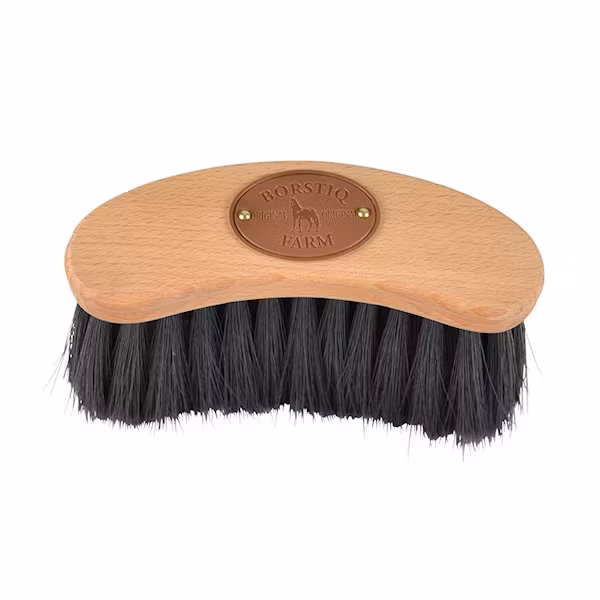 Bananformad greppvänlig borste effektiv mot damm. Tillverkad med en rygg bokträ och med mjuka, 12 cm långa flexibla borst av polypropylen som ger en skinande pä
