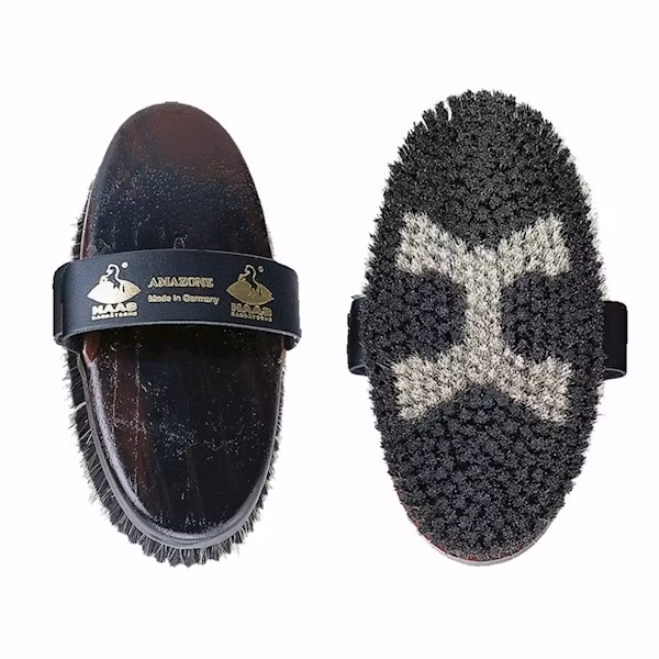Speciell borste gjord av utvalda tagel, med den karakteristiska HAAS borstfält som står för kvalitet och en övertygande borstning erfarenhet. Den tagel skapar en underbart silkeslen och glänsande päls och främjar cirkulationen. Så hästen är väl förberedd för nästa attraktionen.