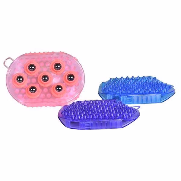 Massageborste ifrån Three Horses. Gummiborste med magnetiska massage kulor.