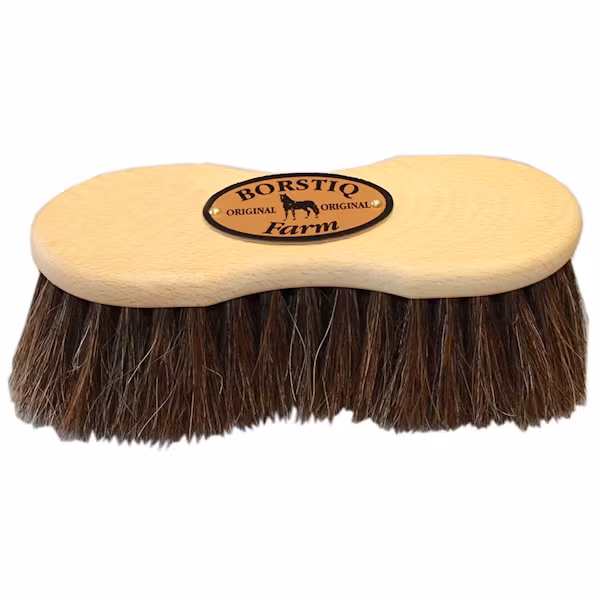 Greppvänlig, ergonomisk extra mjuk borste för damm borttagning med en greppvänlig rygg av bokträ och borst av 100% tagel. Lämplig för känsliga hästar. Bors