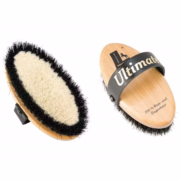 Den ultimata ansiktsborsten, mjuk med gethår i mitten och äkta tagel i ytterkant som ger hästen en härlig ansiktsmassage. Lämnar inte några spår av damm och ger