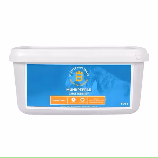 Munkpeppar har använts i hundratals år för att stödja hormonbalansen.Genom att ge Eclipse Biofarmabs högkvalitativa Munkpeppar hjälper du din häst att balansera hormonnivåerna på ett naturligt sätt, vilket ger den möjlighet att slappna av och koncentrera sig på sitt arbete.