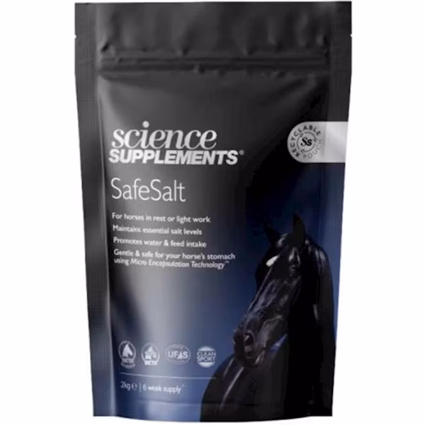 Även om salt och elektrolyter kan läggas till fodret, tycker hästar ofta att dessa är osmakliga och deras korniga natur gör att det är lätt för noga hästar att lämna dem längst ner i krubban. Det finns också bevis för att vanligt salt kan orsaka eller förvärra magsår hos hästar. SafeSalt är en unik formulering som ger en smaklig källa till natrium och klorid och hjälper till att övervinna dessa potentiella smakbarhetsproblem.