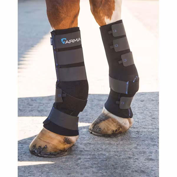 Lerskydd till hagen när det behövs som mest! Långa stötdämpande skydd för känsliga ben. Även bra till hästar som är känsliga för mugg. Kardborreknäppning.