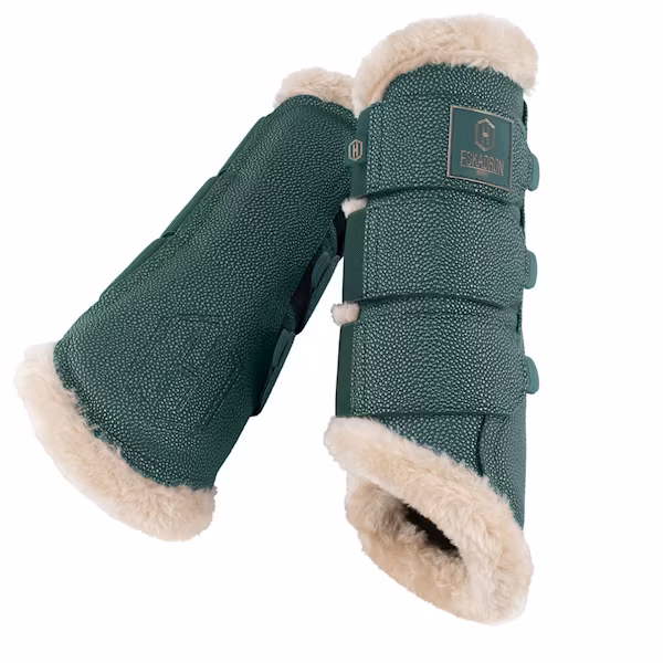 Benskydd med utsida av läderimitation och mjuk kant av härlig fårskinnsimitiation. Förstärkt insida för att skydda emot slag. Kraftiga kardborrar med elasticitet och logga på översta kardborren.