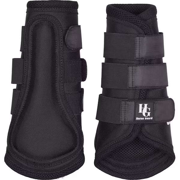 Benskydd i starkt yttermaterial med foder i 3D -mesh för bättre ventilation. Stark kardborrstängning.