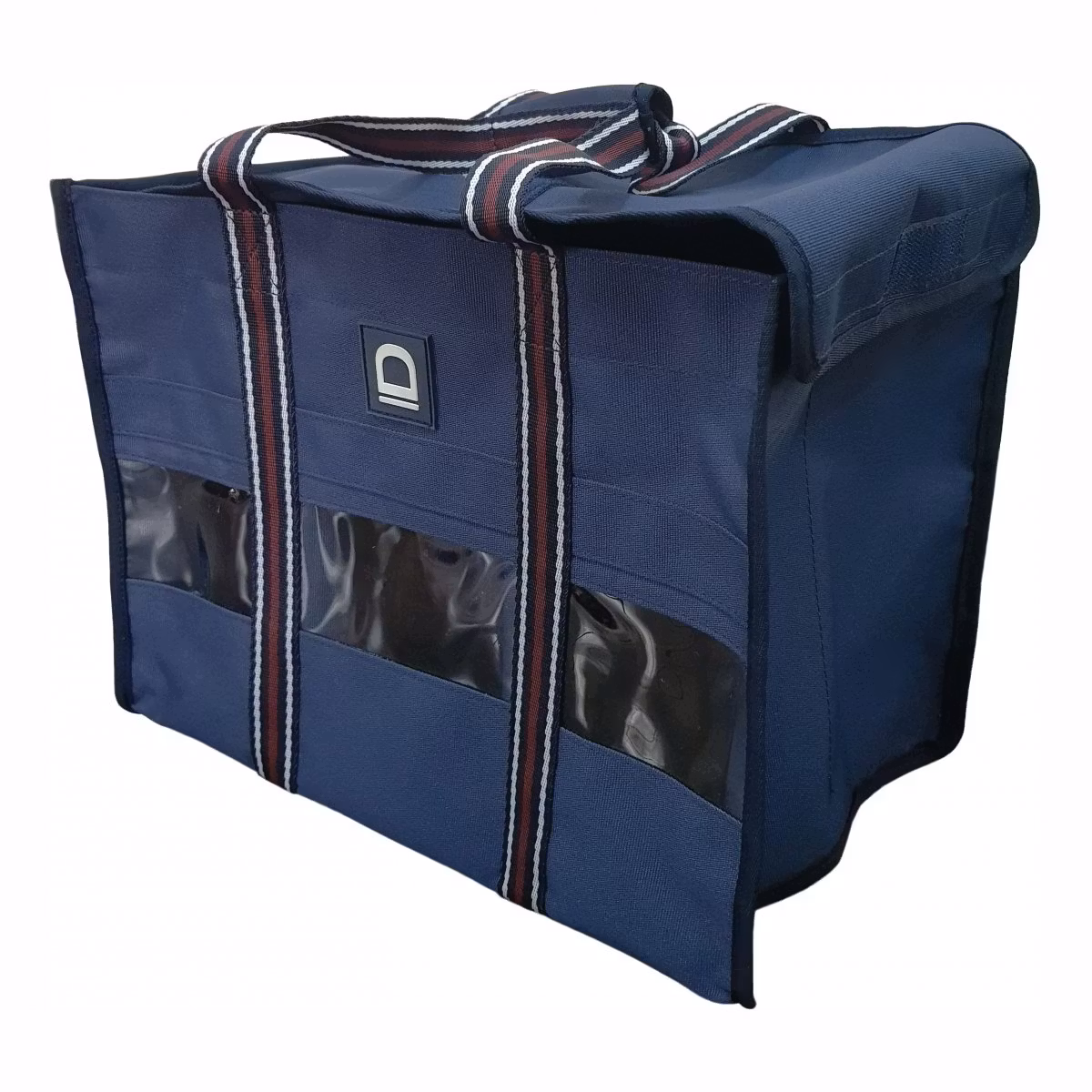 Praktisk bandageväska att förvara benlindor i med smarta fack från Equipage.Stilren i marinblå grund med vinröda kantband och diskret logga fram.Enkelt heltäcka