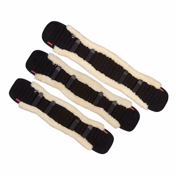 Dessa lyxiga sadelgjordsskydd är halvkantade med mjuk Merino Lambswool och idealisk för att förhindra skav och klämning - maximera komfort och enkel rörelse. Ny design har en förlängning till sin längd för att fullt ut stödja ändarna, vilket förhindrar oönskade tryck. Två separata elastiska loopar tar håller fårskinnet på plats och undviker rotation. Korrekt montering av de två centrala kardborrbanden är avgörande för att förhindra att gjorden inte glider runt.