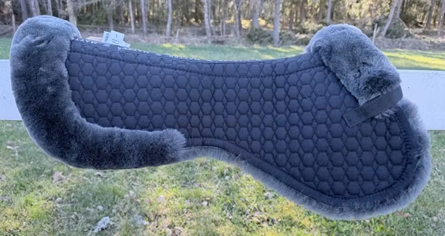- Fårskinn ger goda tryckfördelande egenskaper vilket ökar komforten och minskar obehag för hästen, den specifika strukturen i EA Mattes fårskinn tillåter hästens muskler att fortsätta utvecklas.