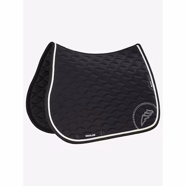 Eonda schabrak från Equiline.Eonda är ett högkvalitativt och elegant schabrak med Equilines signaturquiltning, utsmyckat med passpoaler och Equiline-logotypen i