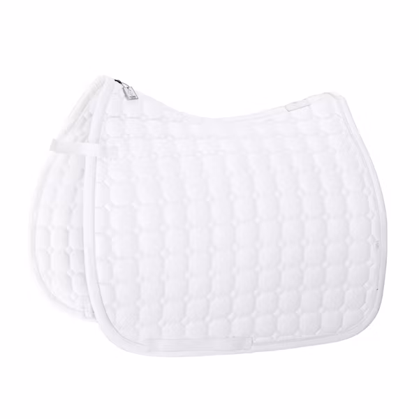 Schabraket är tillverkat i slitstark bomull med en mjuk moltoninsida som ligger behagligt mot hästens rygg. Den kompakta och tåliga fyllningen tillsammans med en stabil quiltning ger bra formstabilitet och hjälper schabraket att ligga på plats under ridning.