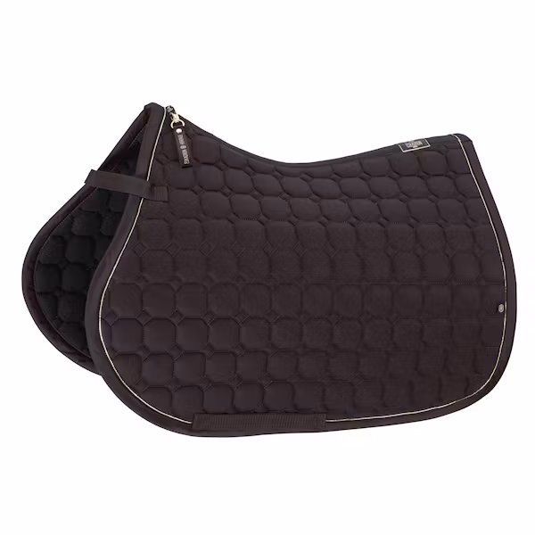 Eskadron Cotton Saddle Cloth är ett stilrent och funktionellt schabrak i 100 % bomull, bomull på utsidan och mjuk molton på insidan som ligger skönt mot hästens rygg. Den kompakta fyllningen och quiltningen ger en jämn tryckfördelning utan att bygga för mycket under sadeln, vilket gör schabraket perfekt till både vardagsridning och träning.