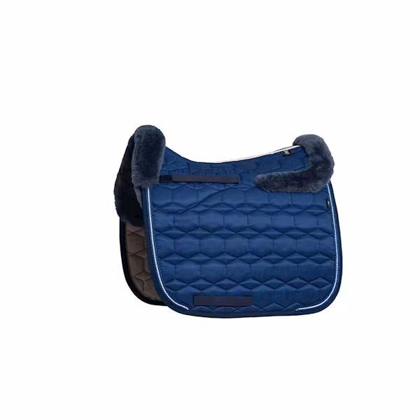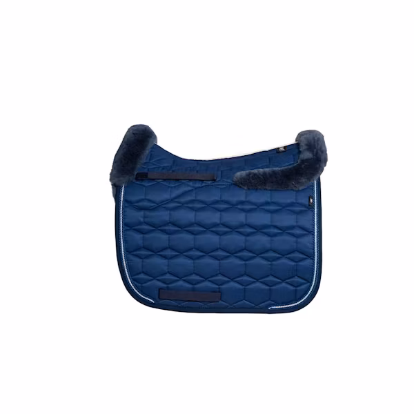 Fårskinnsschabraken och sadelpaddarna från Mattes håller absolut topp-kvalité. Just det här dressyrschabraket är gjort i blå blank bomull med certifierat framtaget fårskinn i den integrerade padden som också har Mattes SPINFREE® design. SPINFREE® innebär att sadelpadden har en kanal som tillser att ryggraden inte får ökat tryck utan tvärtemot avlastas.