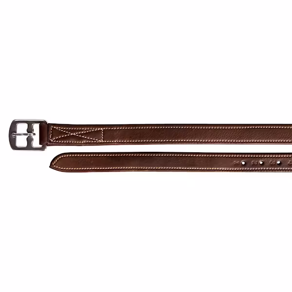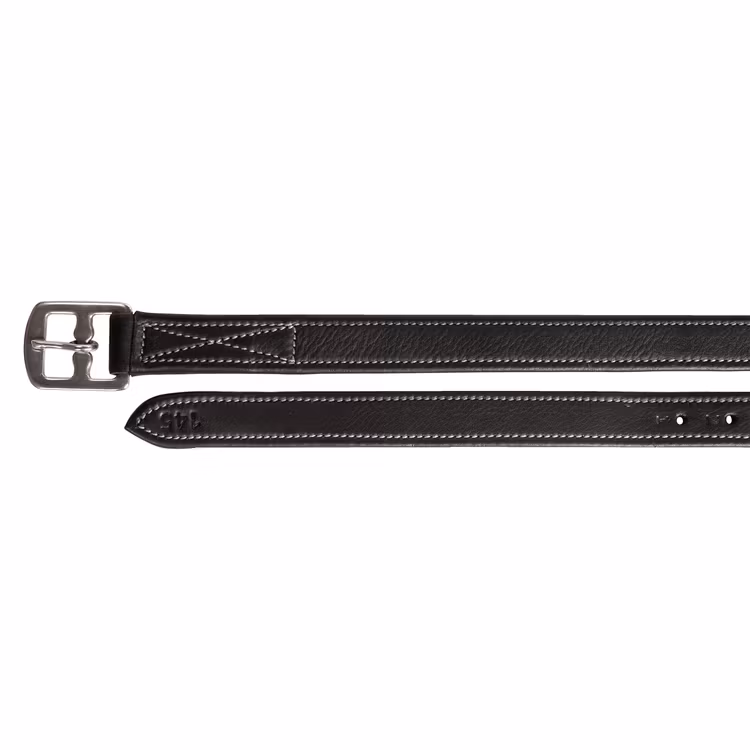 Dubbelsydda i mjukt kalvskinn med nylonkärna. Rostfria söljor.