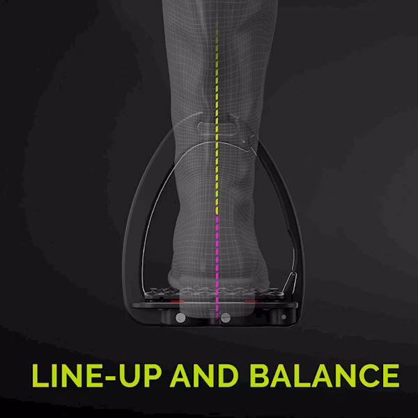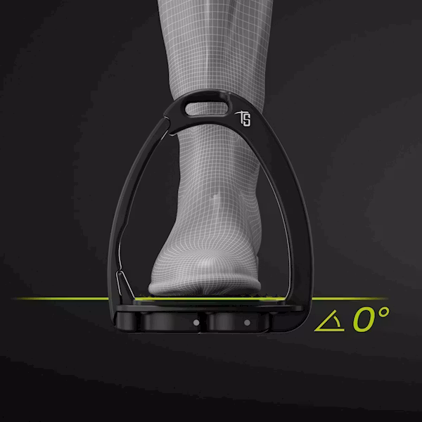 Greppet i plattan är framtaget efter studier inom hoppning och fälttävlan och ger maximalt grepp oavsett om förhållandena är torra eller blöta. Under fotplattan finns fyra stötdämpande insatser som gör att stigbygeln följer dina rörelser och därmed ökar såväl din prestation som komfort. Plattan har också 5° lutning, vilket gör det enklare för dig att hålla hälen nere. De hjälper dig att hålla benet och fotleden i rätt position, likaväl som de ger dig stöd för att hitta balans.