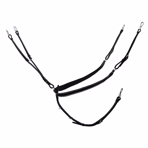 En justerbar förbygel med breda, elastiska remmar. Fästs lätt i de små D-ringarna under lilla kåpan på sadeln med hjälp av en clips.En pistolhake gör det snabbt