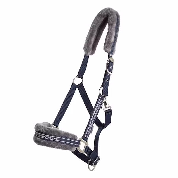 Grimma i många läckra färger med mjuk ludd mot nos och nacke.Stenar på sidostycken och nos och ställbar nack och nosrem med spännen i matt silver.Tillverk