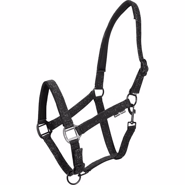 Reflexgrimma med neoprenstoppning. Stänktryck i reflekterande material. Svartlackerad metall. Horse Guard-logga vid spännen.Tillverkare: Eldorado A/S&