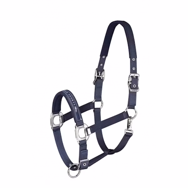 Memphis grimma ifrån Schockemöhle. En kraftig grimma i nylon med nack och nosfodring i fleece. Rejäla spännen och fästen. Schockemöhles logotype på nosdelen.