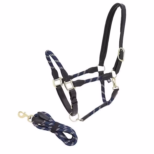 Grimma i läder med repdetaljer. Nackstycke i läder med mjuk padding. Rep på nosrygg med läderbakstycke och inspänning. Inklusive repgrimmskaft.