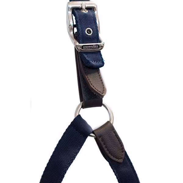 Schockemöhle Nylongrimman Memphis Safety.Grimman är gjord i slitstark nylon samt läderimitation vid nackspännena för extra säkerhet.Detta gör att om hästen fast