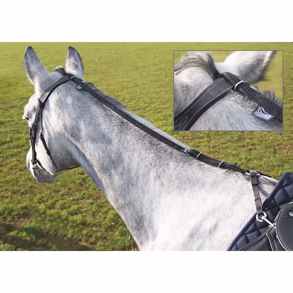 Smidig hjälptygel som hindrar hästen från att dra ner huvudet. Perfekt för envist betande ponnyer. Fästs i sadeln och tränsets nackstycke.