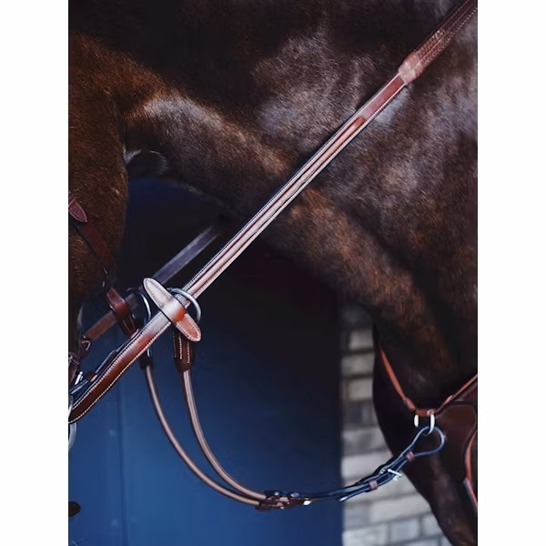 Vävribbtygel med stopper och mönstersöm på lädret.