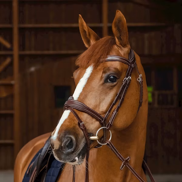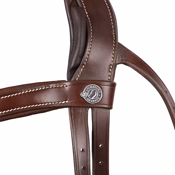 Anatomiskt utformat träns i högkvalitativt italienskt läder från Signature Sport by Antarès.Anatomiskt utformat svängt nackstycke för att minska tryck på känsli