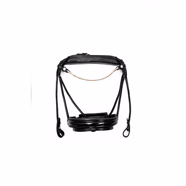 Ett anatomiskt och rundsytt träns i mjukt amerikanskt läder med ett unikt nackstycke som förebygger tryck- och muskelskador i hästens nacke och halsmuskulatur. Tränset är försett med ett tunt pannband med snygg clinker i silver det finns även pannband med swarovski stenar att köpa separat i märket Finesse.