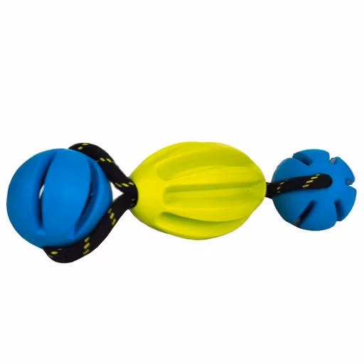 Hundleksak i gummi gjord för mångsidig lek. Tillverkad i mjukt gummi som är skonsamt för hundens tänder och tandkött. Perfekt för dragkamp, apport och att stopp