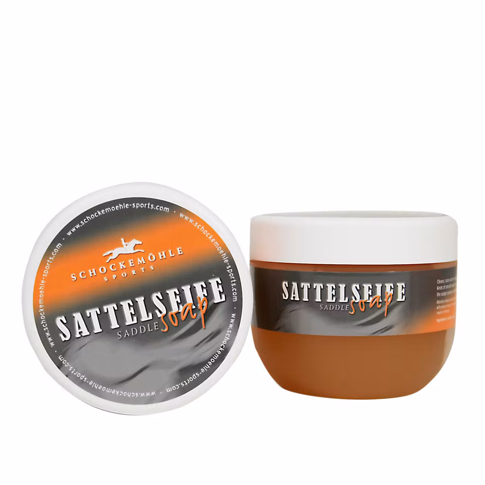 Schockemöhle Sports Sadel Soap: denna är särskilt lämplig för den första rengöringen av sadeln och sadelremmar. Produkter som har rengjorts med sadeltvål kräver ytterligare en slutlig vård, till exempel med läderbalsam. Det måste påpekas att vissa läderprodukter bör smörjas mer sällan (t.ex. sadelremmar). För bästa resultat bör sadeltvål inte heller appliceras för ofta.