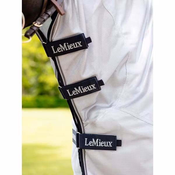 LeMieux Flugtäcke Ride On Grå är ett genomtänkt flugtäcke att rida i, utvecklat för att ge hästen maximalt skydd mot flugor och insekter under ridpasset utan at