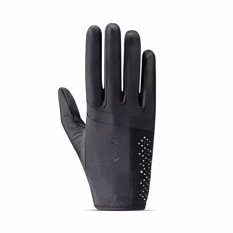 Mjuk, elegant och lätt – för ett minnesvärt utseende! Sätt dig i sadeln och dra blickarna till dig med LILLINOE: De glittrande Swarovski®-kristallerna längs handskens utsida garanterar att du drar till dig uppmärksamhet. Men dess attraktionskraft går bortom utseendet: med premiummaterial, noggrant utformade detaljer och ett grepp med hög taktilitet gör den till det perfekta valet för ryttare som vill ha allt.