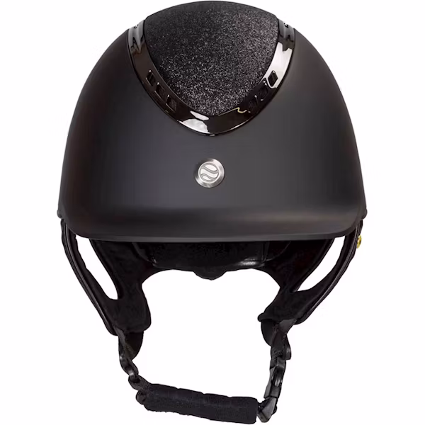 Snygg och säker ridhjälm med MIPS.EQ3 Pardus+ är en elegant ridhjälm med god ventilation. Stilren look med en svart mattblank yta och glittrig sand i mitten. Ve