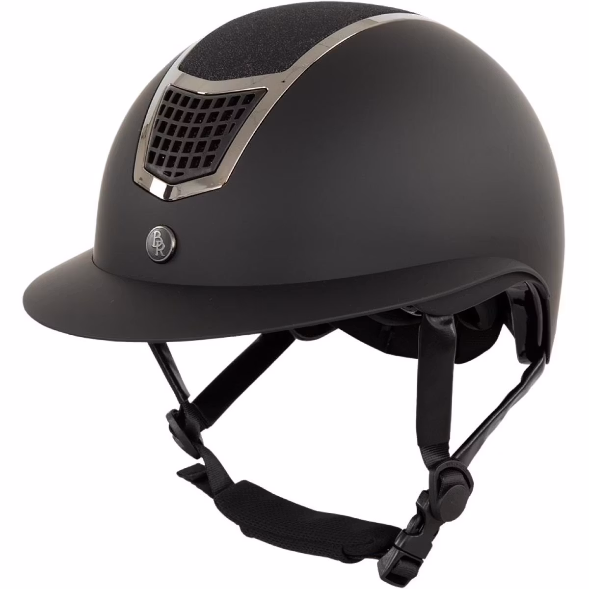 • Snygg glittertopp inramad av en glänsande bård• Ventilationshål ovanpå hjälmen och på framsidan• Stort visirPRODUKTINFORMATIONBeskrivning:BR ridhjälmen Lambda
