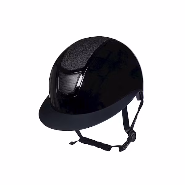 HKM Lady Shield Diamond är en modern hjälm sopm har en bred skärm och glitter på ovansidan det ger den ett exklusivt intryck