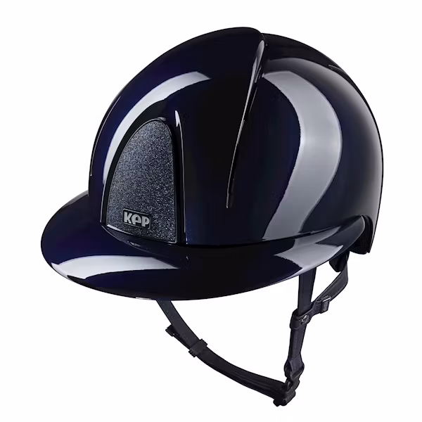Nya generationens ridhjälm – en modell som förenar italienskt hantverk, modern teknik och ett formspråk som riktar sig till unga ryttare som vill rida med både stil och säkerhet. Hjälmens yttre skal är tillverkat i lackerad ABS, medan insidan består av EPS med hög slagtålighet. Konstruktionen ger ett effektivt skydd mot stötar, samtidigt som den förlängda baksidan följer nackens ergonomi och skyddar ett av huvudets mest känsliga områden utan att begränsa ryttarens rörelsefrihet. Den vattenavvisande och hypoallergena hakremmen i ekologiskt läder har ett 5-punktsfäste som håller hjälmen stabil även under intensiva ridpass. Denna i snyggt glossy eller shiny som det även kallas med glitter i frånten och på Kep-loggan baktill. Riktigt snyggt gjort och det glittrar otroligt i solljus.