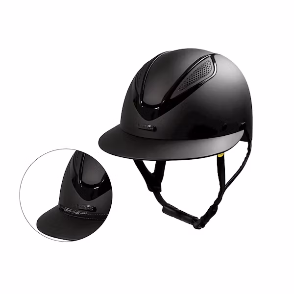 Svart ridhjälm med MIPS solskärm – Lami-Cell Adele erbjuder en perfekt balans mellan stil, komfort och skydd, vilket gör den till ett utmärkt val för ryttare på