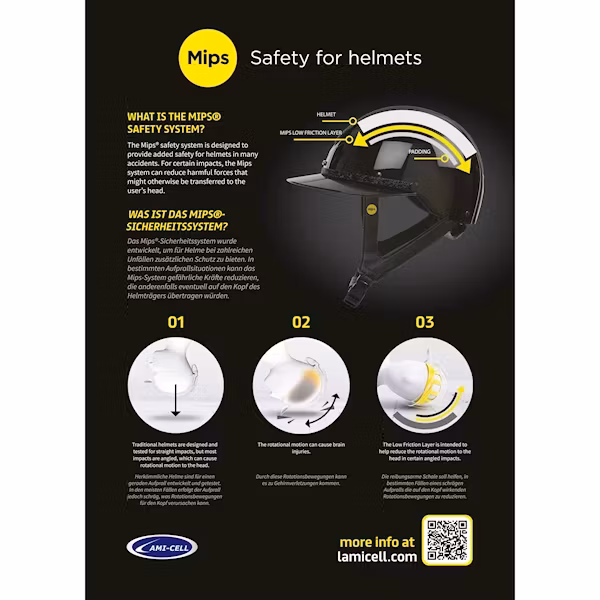 Svart ridhjälm med MIPS solskärm – Lami-Cell Adele erbjuder en perfekt balans mellan stil, komfort och skydd, vilket gör den till ett utmärkt val för ryttare på alla nivåer. En lättviktshjälm med implementerat Mips-system. Utsida av “Impact-resistant” ABS material. Innerskal av stötdämpande Expanded Polysterene (EPS) foam. Skärm: PA- Polyamid TECAMID Vikt: 590g (+-30g) Liner: Avtagbar i cool-dry mesh Hakrem: Eco-läder med 4-punktspänne För optimal passform justeras storleken enkelt baktill med hjälp av rattsystemet och det justerbara hakbandet. Avtagbar dekor-strap medföljer. GODKÄND ENLIGT STANDARD CE EN1384-2023 Storlek: S/M:52-56 cm, M/L:56-59 cm