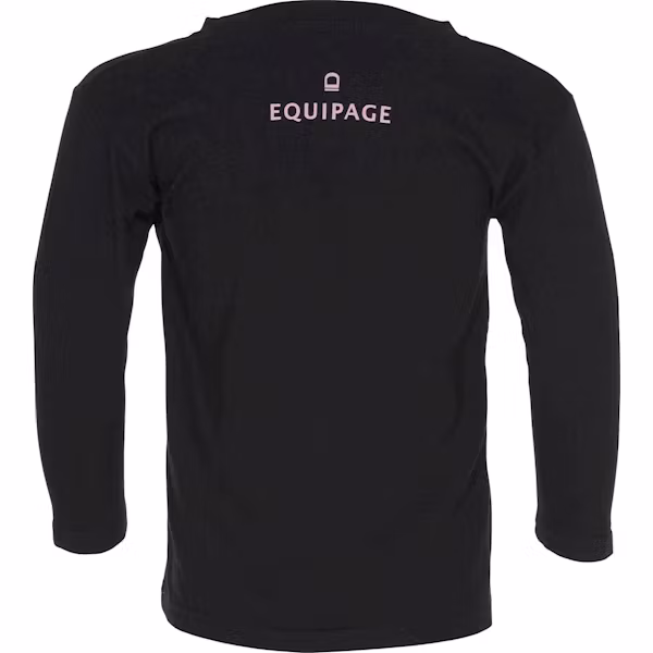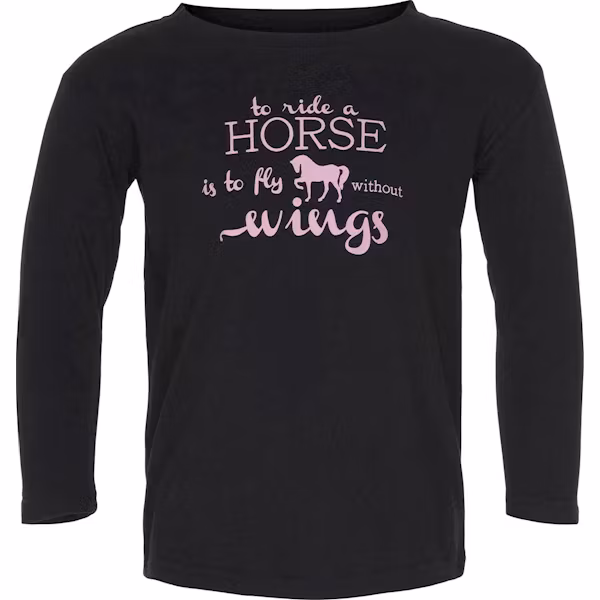 Långärmad t-shirt för barn. Den svarta tröjan har ett lavendelfärgat citat på bröstet. Logotyp på baksidan av tröjan. Den randiga tröjan i lila har ett litet enhörningsbroderi på bröstet. 100% bomull