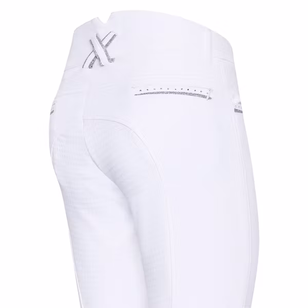 Vår nya favorit ridbyxa Capone' finns med hög midja! Dessa chica och feminina ridbyxor perfekt komfort under ridning och är ett riktigt blickfång. Strass- och glitterapplikationerna pryder fram- och bakfickorna, bälteshällor. Bensluten är elastiska och gjorda av färgmatchande textil. Dessa ridbyxor har inte bara en fantastisk stretch, utan är också vatten- och smutsavvisande.