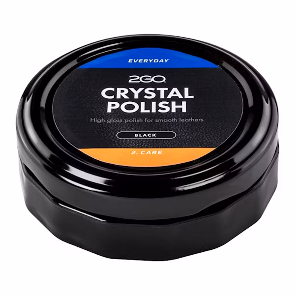 Skokräm för släta skinn- och lädertyper. Ger en spegelblank finish. Efterpoleras till önskad glansmed duk eller borste