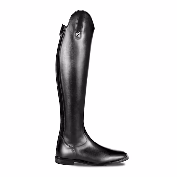 Linus Dressage, med förstärkt skaft för extra stadga. Designen är enkel och elegant, med karaktär av en typisk Cavallo-dressyrstövel. Linus Dressage är en unive