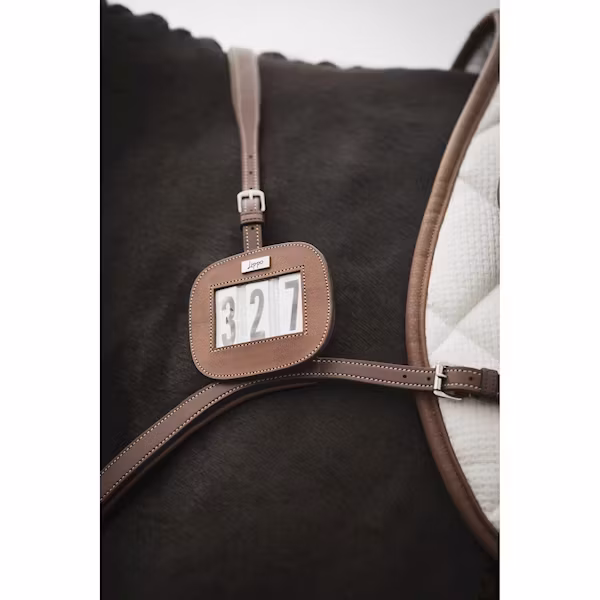 Lippo’s praktiska och stilrena nummerlapp i läder erbjuder ett enkelt och elegant sätt att visa ditt tävlingsnummer. Nummerlappen kan fästas på flera olika sätt, exempelvis på schabraket, förbygeln, tränset eller stigbygeln, med hjälp av antingen en säkerhetsnål eller en avtagbar elastisk kardborre för säker fastsättning. Den diskreta och snygga designen gör att nummerlappen passar in i alla tävlingssituationer. De plastade numren är slitstarka och lätta att hålla rena, vilket gör nummerlappen både praktisk och hållbar. En mångsidig nummerlapp som är enkel att använda och passar för olika behov. Rund - 3 siffror