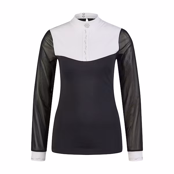 Jättefin tävlingstopp med långa ärmar ifrån Pikeur Selection.Ärmarna är gjorda i fint tyg, med uppvikta tyguppslag i ärmslut. Mycket funktionell blus i lätt tun