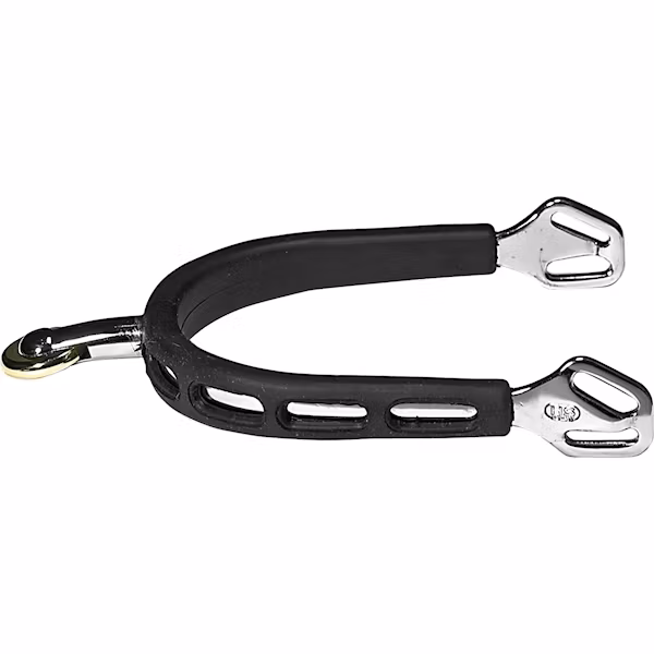 Mjuk gummi som gör att sporren hålls på plats och skyddar mot både onödigt tryck och slitage på stövlarna.