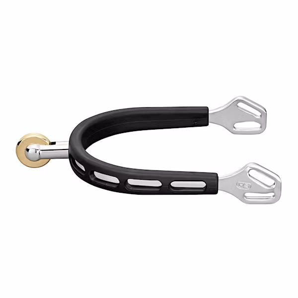 Mjuk gummi som gör att sporren hålls på plats och skyddar mot både onödigt tryck och slitage på stövlarna.